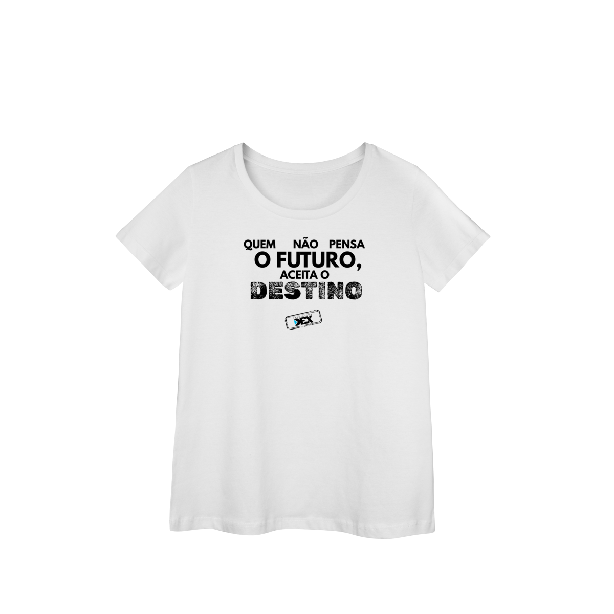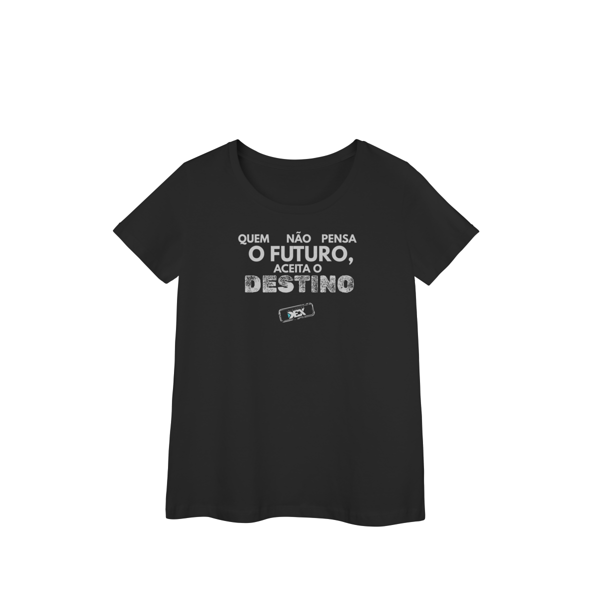 Para a mulher que lidera, planeja e executa. A Baby Look Prime Concept traz a poderosa mensagem "Quem não pensa o futuro, aceita o destino" em uma modelagem desenhada para unir elegância e propósito.