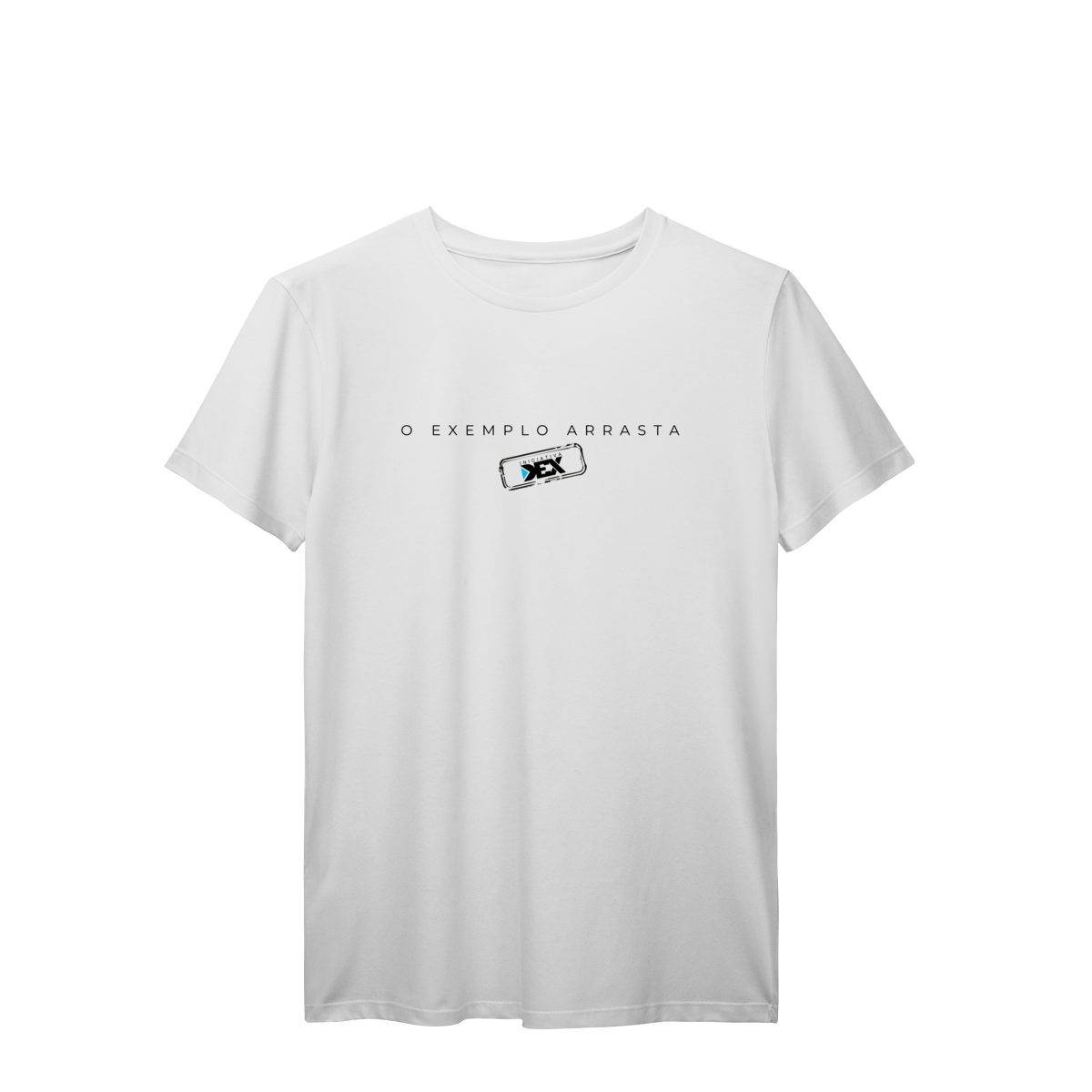 Com um design tipográfico sóbrio e imponente, a estampa "O Exemplo Arrasta" comunica, sem gritar, que você é um homem de ação e coerência. É a peça ideal para ambientes onde a postura vale mais que o discurso.