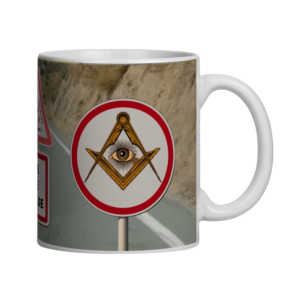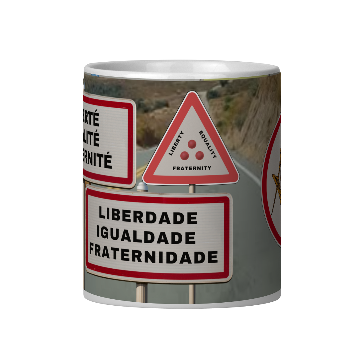 A vida é uma longa jornada, e para não nos perdermos no caminho, precisamos estar atentos aos sinais. Esta caneca exclusiva da coleção Construtores transforma os princípios maçônicos em placas de sinalização, lembrando que a Liberdade, a Igualdade e a Fraternidade são as regras de trânsito para uma conduta reta.