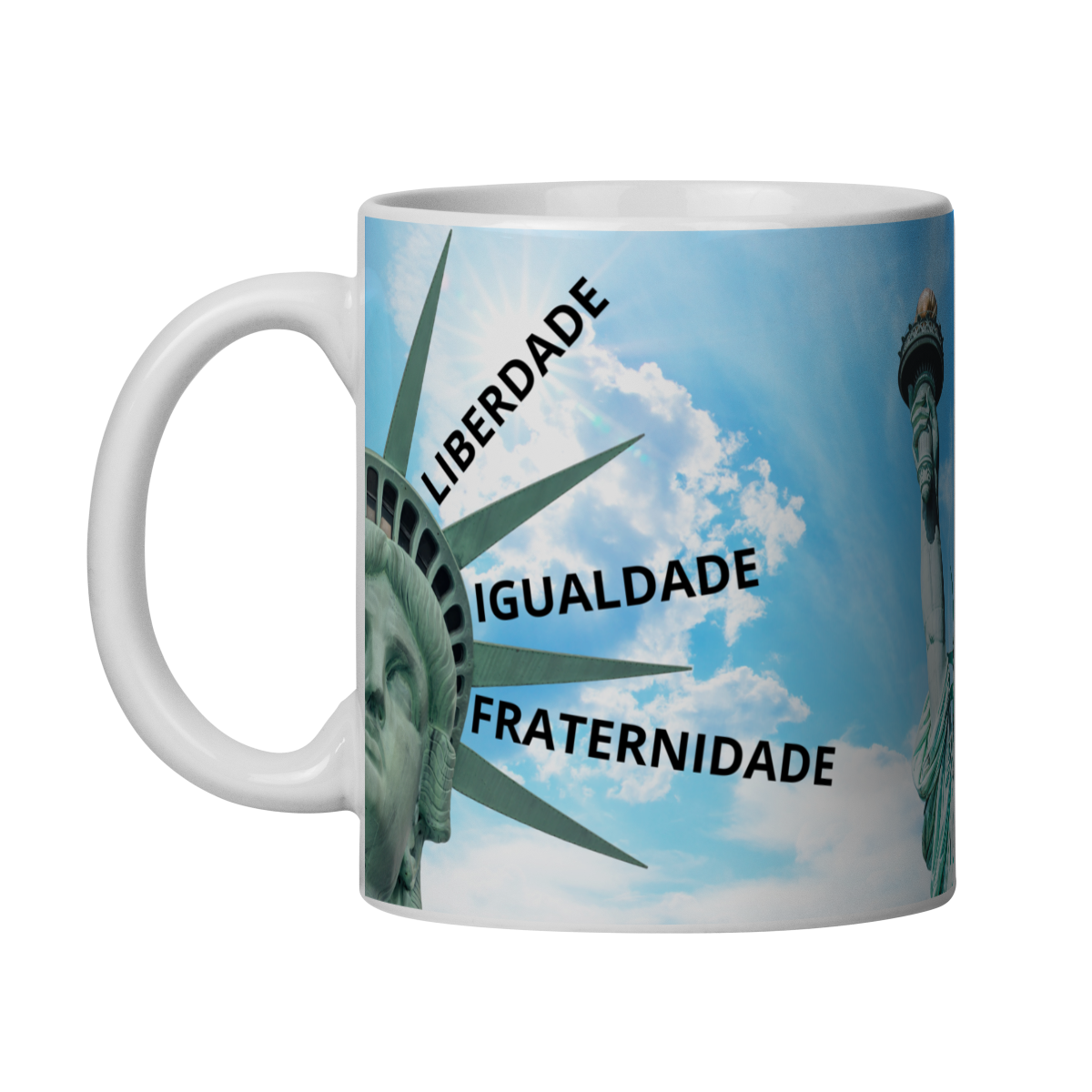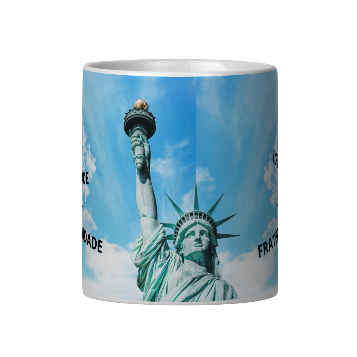 Qualidade QG Véritas: Cerâmica branca de alto brilho (Classe AAA), garantindo que as cores do brasão da loja e a tipografia do salmo fiquem nítidas e duráveis.